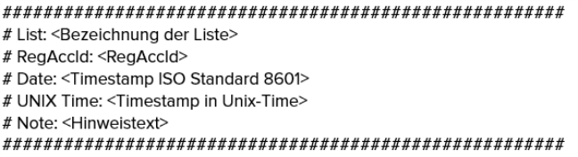 | UNIX Time | Das Feld "UNIX Time" gibt den Erstellungszeitpunkt der vorliegenden Liste in UNIX Time an. |