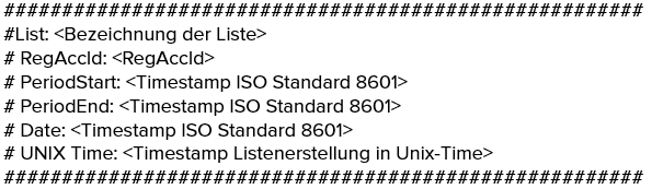 | Date | Die täglichen Listen spiegeln den Stand zu einem bestimmten Zeitpunkt wieder. Dieser Zeitpunkt wird im Feld „Date“ ausgegeben im ISO-Standard 8601, z. B. 2025-04-01T00:00:00+02:00. |