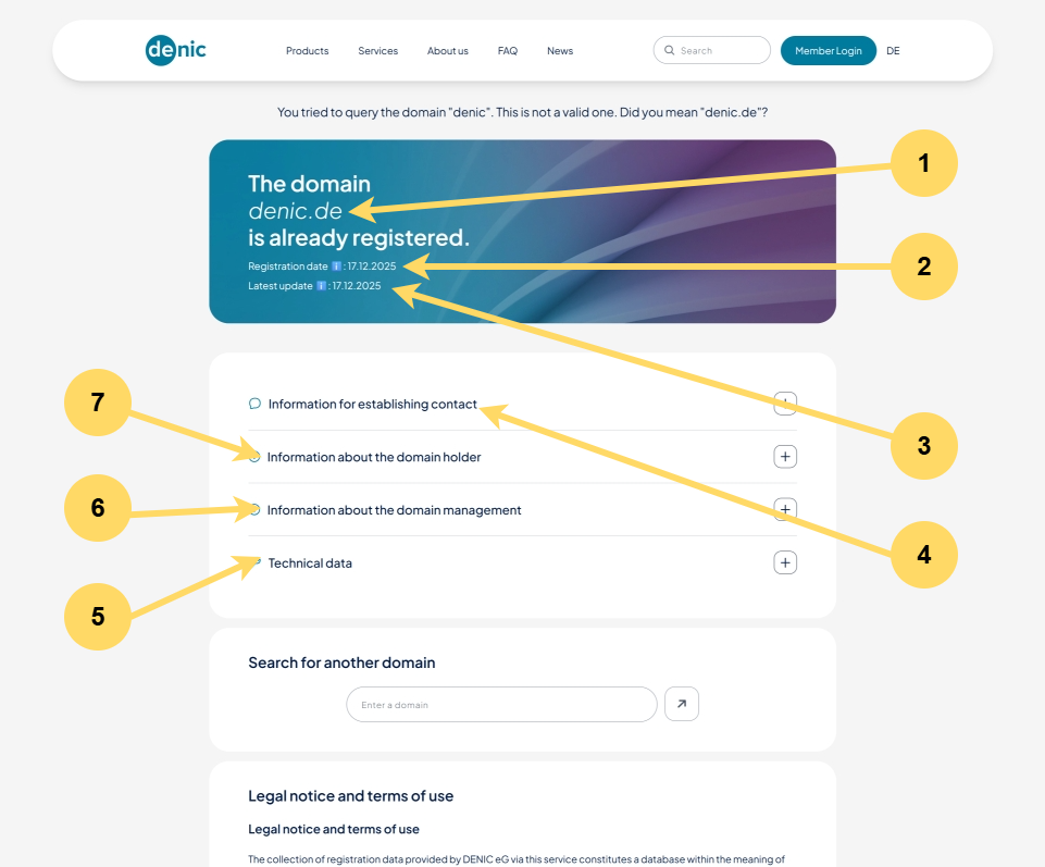 Figure 1: Domain query (whois Service) on denic.de